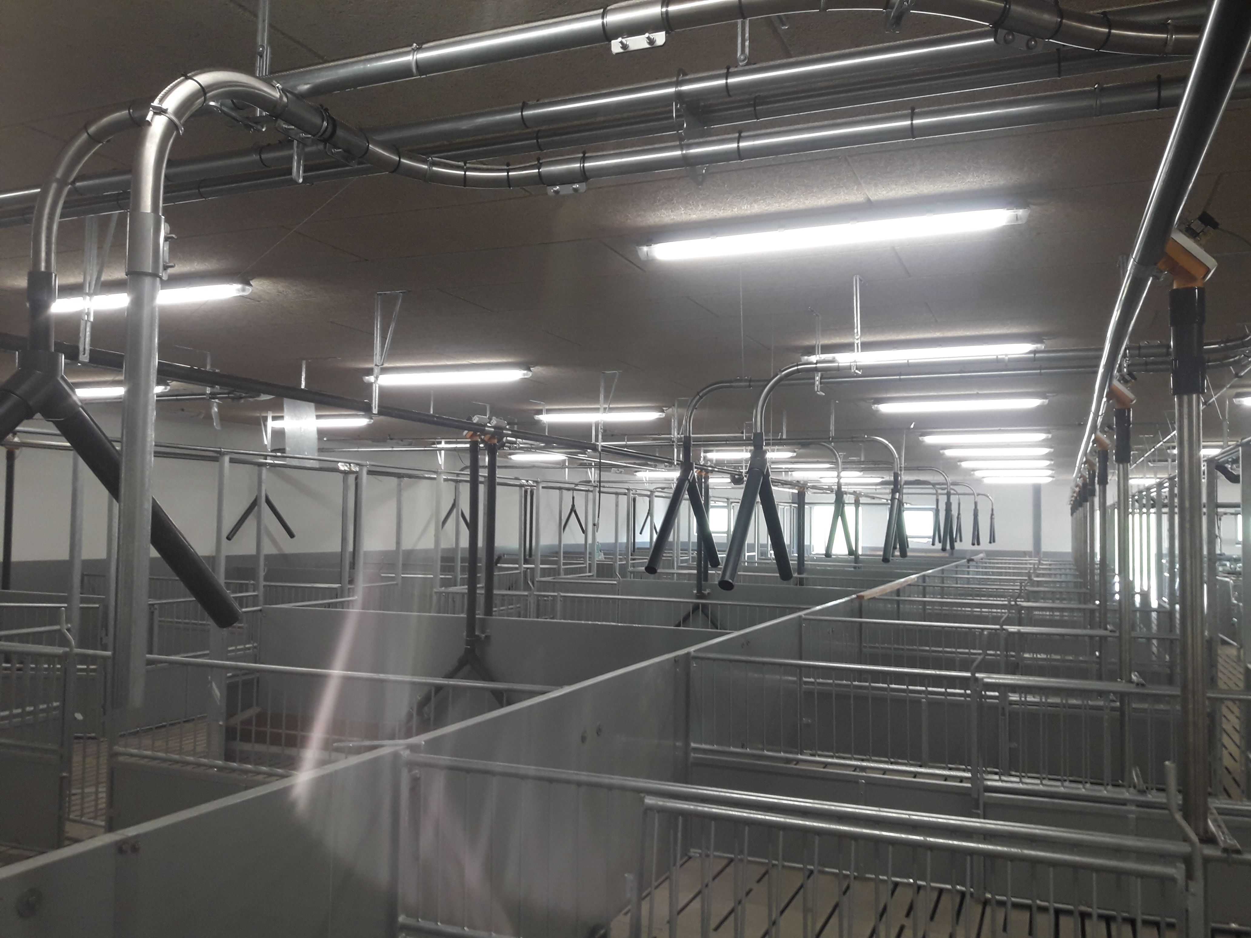 After gaining positive experience with the technology in the straw distribution system, Bopil was selected to also supply a SpotStrø for the new facility, which began operations in the summer of 2020. The straw distribution system supplies straw to the large gestation barn and the farrowing section.