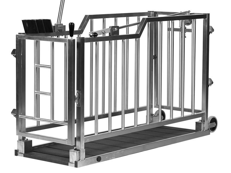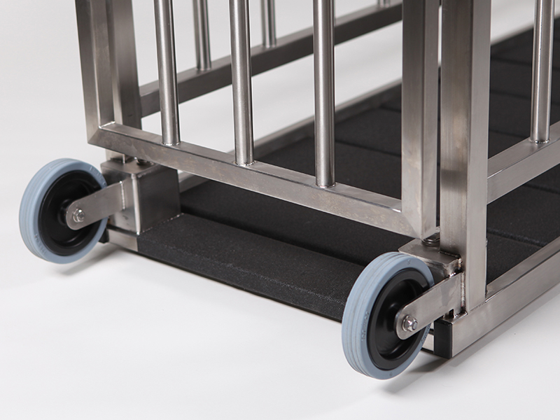 Den elektroniske A2 vægt er meget nem at flytte rundt i stalden. Vægten flyttes rundt i stalden på højkant - støttet på 3 hjul. Dyrene går gerne ind i vægten på grund af de åbne sider. Et meget lavt indgangstrin er ideel til både smågrise og slagtesvin.